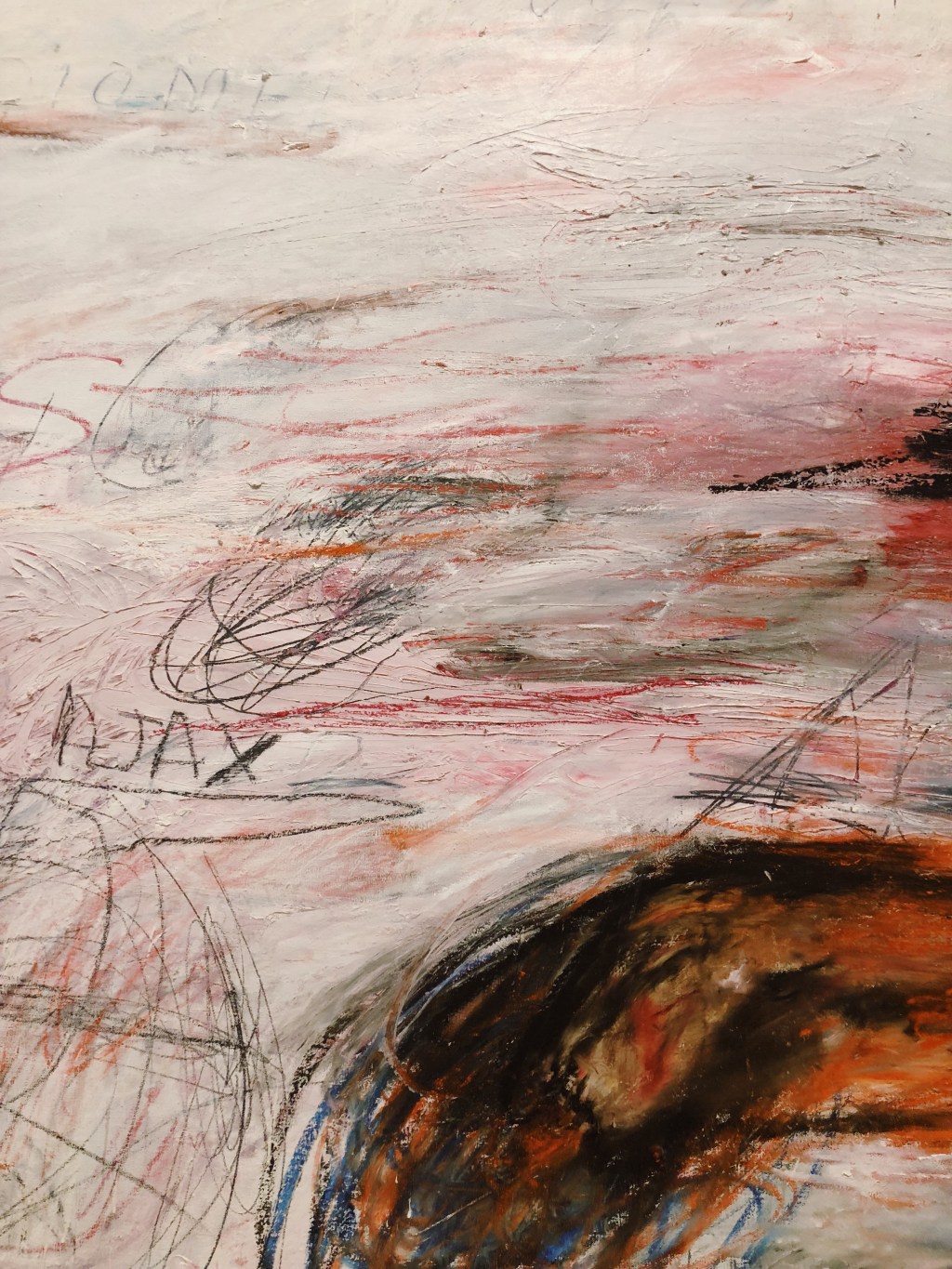(Photos are from Cy Twombly’s Fifty Days at Iliam, currently at Philadelphia Museum of Art. Specifically from the painting, Achaeans in Battle.)